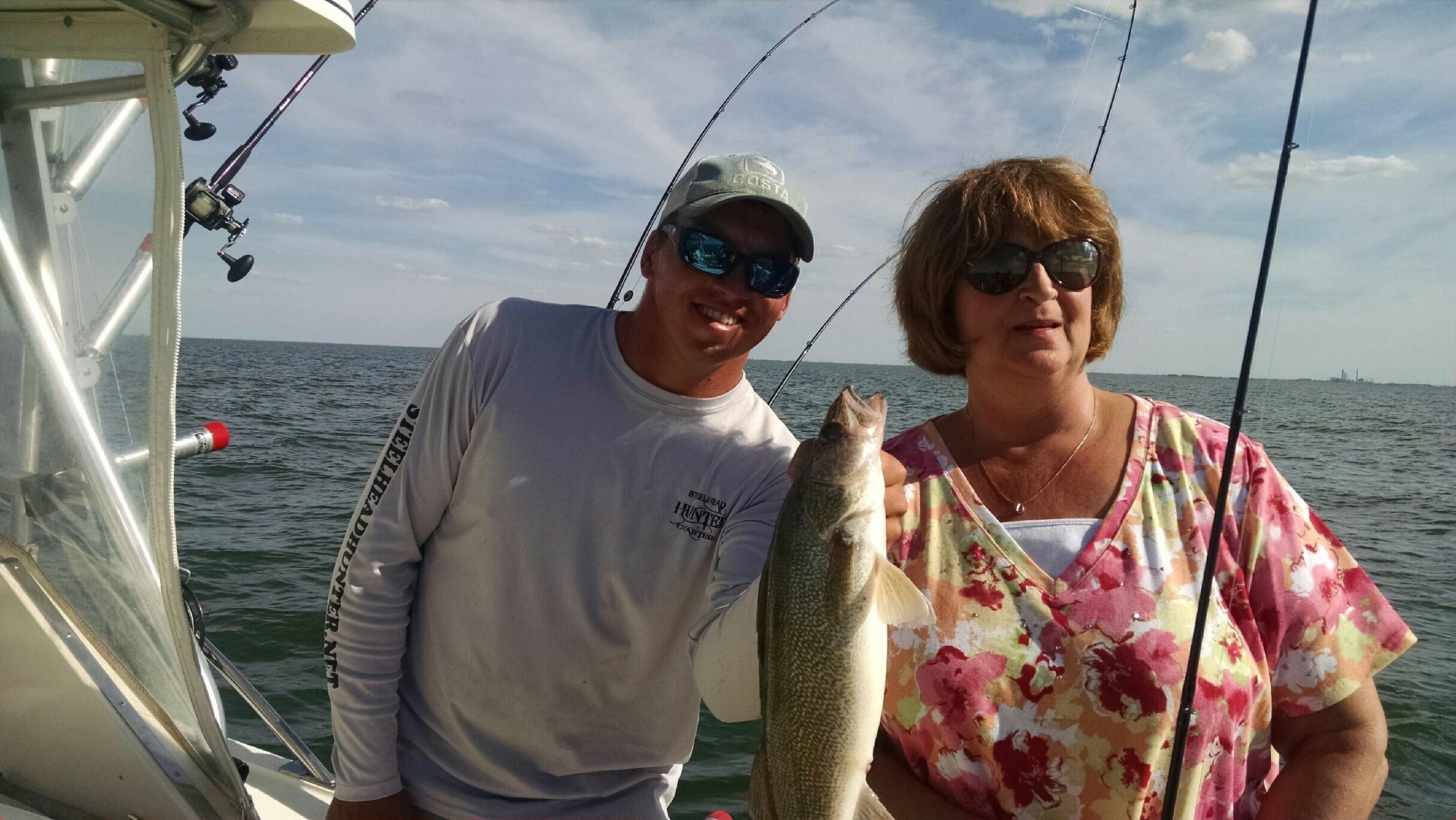 Here’s what’s going on … Lake trout fishing still remains good , a few small kings around and steelhead but not what it should be. There is lots of reports of nice big kings being caught in Wisconsin. So remember there going to come home at some point. We fished the bud wiser touny this weekend . Took first in the ladies and 8th over all. Walleye fishing remains great on Saginaw bay . We have been averaging over 20 fish in a 4 hour trip . We will be on Lake Michigan and Saginaw bay through the weekend , we have openings here and there so give us a call . Also Capt Nate was with Michigan out doors this morning on Saginaw bay with a quick 21 fish morning …